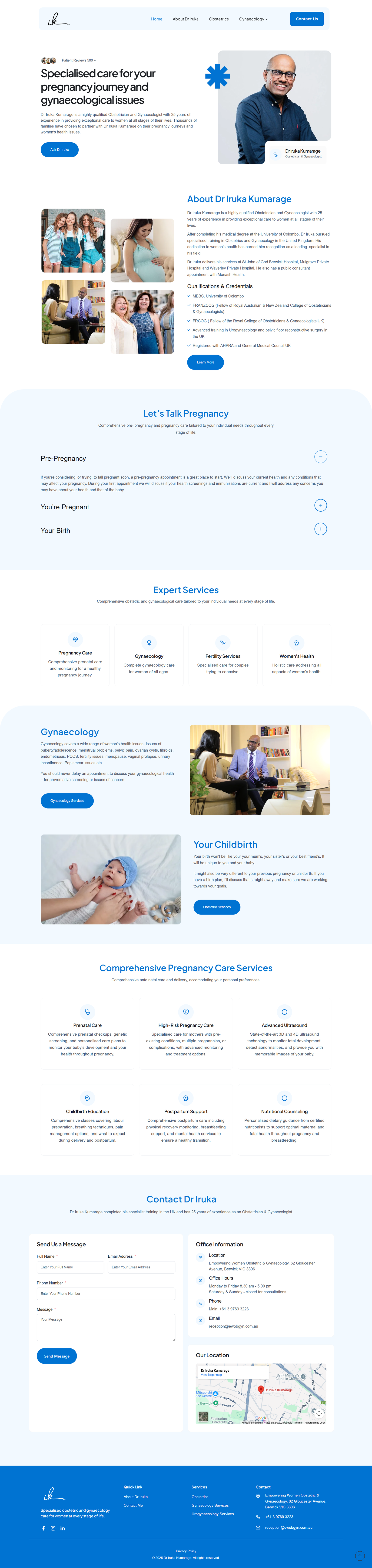 Dr Iruka Kumarage is an experienced Obstetrician & Gynaecologist based in Victoria, Australia, with over 25 years of dedicated service. His website is designed to convey his expertise, compassionate care, and trusted medical credentials, helping patients feel confident and informed about their health journey.